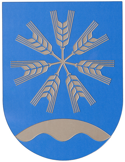 (kultaista) tähkää asetettuina tähden tapaan. Vaakunan on suunnitellut Erkki Niinistö.